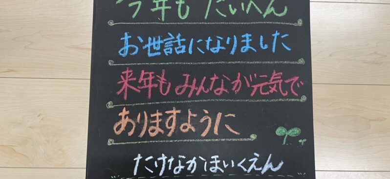 2がっきがおわりました。 ありがとうございました。 ようちえんもほいくえんも ふゆやすみです。 3がっきに また げんきにあいましょう。