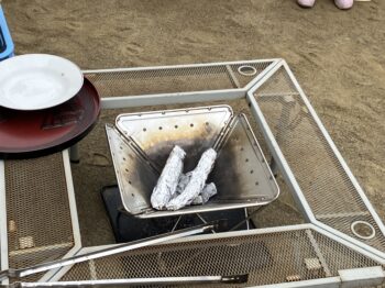 焚き火台で焼き上がったら、こちらのテーブルで。