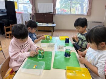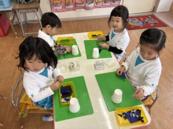 完成が近づくと、「だんだんくらく(暗く)なってきたよ!」と、イエス様の生まれた夜を思いながら作る姿もありました。