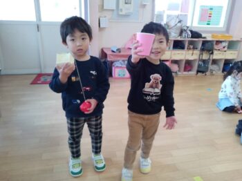3学期がスタートし、お正月遊びを楽しんだり、縄跳びにチャレンジしたりする人など、色んな楽しいを見つけながら過ごしているちいさいぐみさんです。