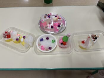 ツリーのデコレーションつき、クリスマスケーキも登場。