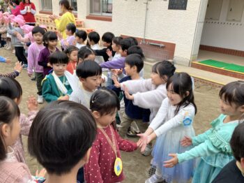 そのあとは、みんなが作ってくれたアーチを通って外でお祝い会をしました!