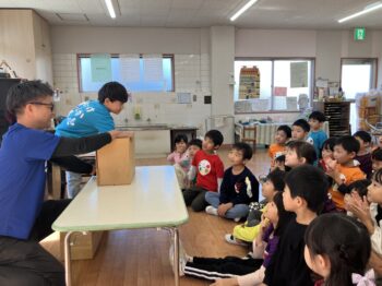 おおきいぐみのお部屋で一緒に体験コーナー、クイズ。
