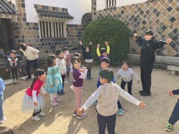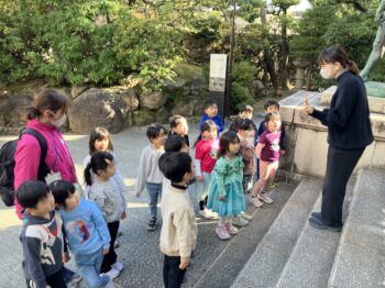 美観地区には、103年前に竹中幼稚園が生まれた場所、"亀遊亭"。入り口の門は昔も今も一緒にということに驚きつつ、