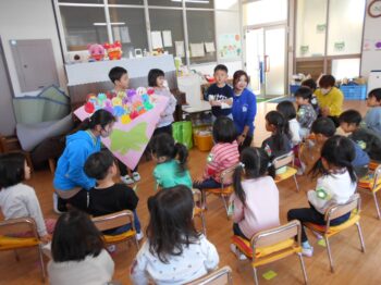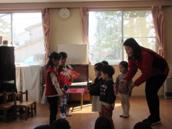 まんなかぐみさんからおおきいぐみさんへプレゼント。