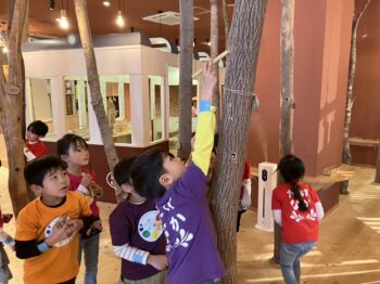 チームに分かれて、木のぬくもりに触れながら