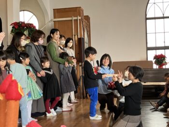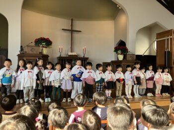 「心配はいりません。神様はいつもあなたのそばにいてくださるから、大丈夫ですよ」これはページェントのなかで出てくる、天使さんのお言葉です。このお言葉を胸に、しっかりお話を伝えてくれました。その姿、ちいさいお友だち、お家の人たち、神様にもきっと、届いたことでしょう。