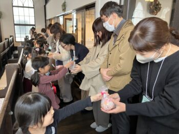 ちいさいぐみさんもクリスマスの讃美歌を一緒に歌ってお捧げしました。
