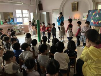 赤ちゃんイエスさまがお生まれになるのは、4本のロウソクに火が灯った時。それまでみんなで楽しみに待ちたいと思います。