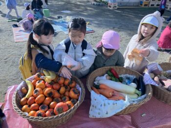 みんな、お家からたくさんの"野菜や果物"を持ってきてくれました。