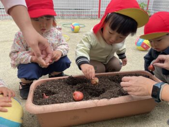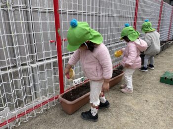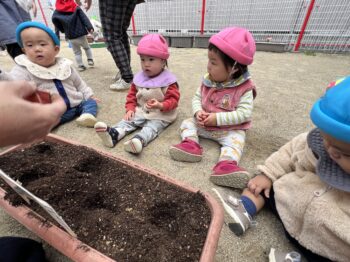 保育園も、春に向けてチューリップの球根植え。