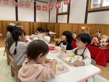 すくすくさん、ぐんぐんさんはおひなさまと一緒に給食をいただき、特別な嬉しい時間となりました。