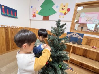 保育園で一番大きいぐんぐんさんは、「クリスマスツリー」の飾り付けのお手伝い。