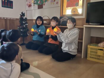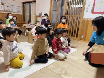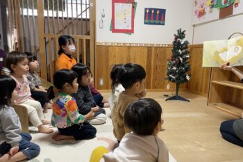 先生に『くりすますのおはなし』という絵本を読んでもらい、