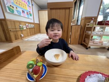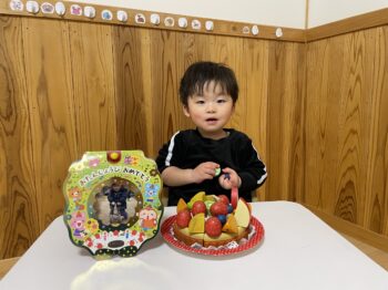 午後のおやつでも『おめでとうケーキ』でお祝い。