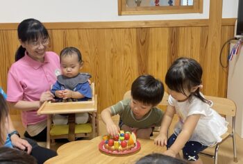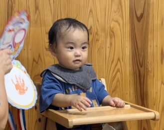 初めての誕生日をお祝いしてもらう、よちよちさん。
