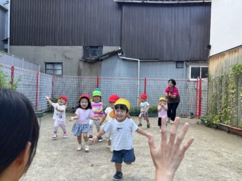 保育園の園庭でも、「よ〜いどん!」賑やかな声が響きます。